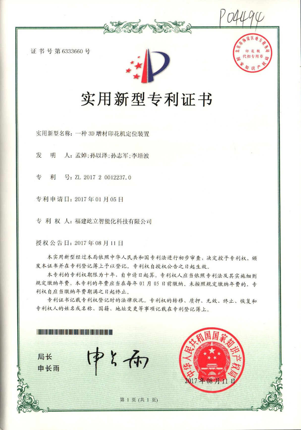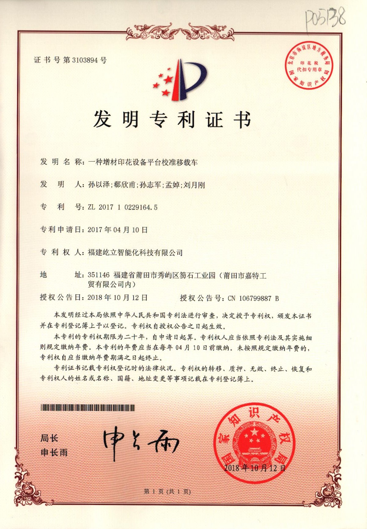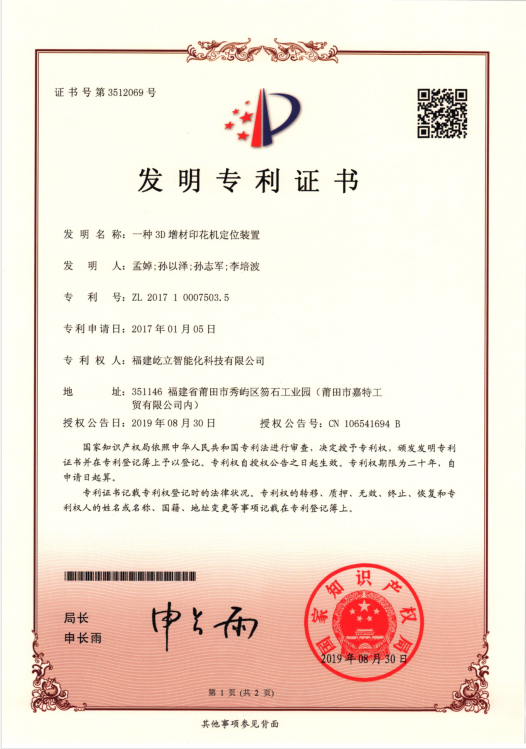 一种3D增材印花机定位装置发明专利