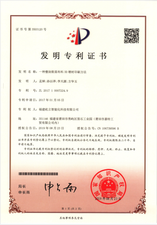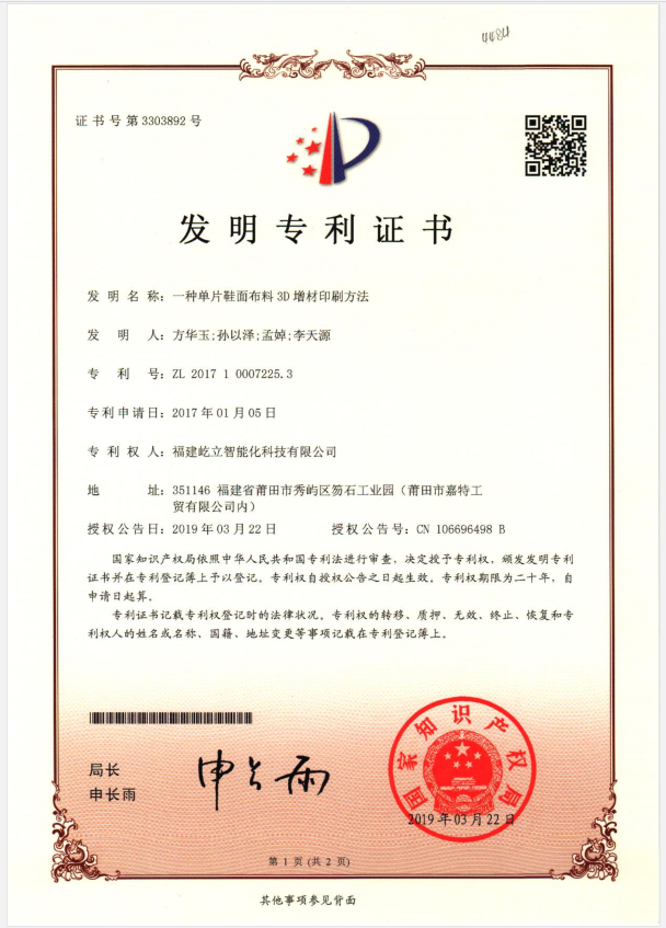 一种整块鞋面布料3D增材印刷方法