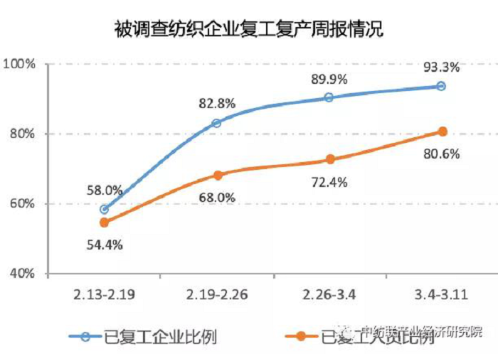 纺织企业复工复产步伐加快,小微企业复工情况好转,企业生产组织能力逐渐恢复。